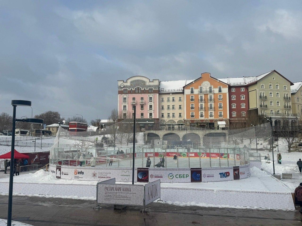 В управлении по физической культуре и массовому спорту администрации города уточнили: «Каток создан в рамках программы „Рязань — Новогодняя столица 2026“ и оснащен системой охлаждения, позволяющей сохранять лед при небольшом „плюсе“. Размер ледовой арены — 40 на 20 м, она вмещает до 50 человек. Рядом обустроены пункты проката и заточки коньков, раздевалки и туалеты».