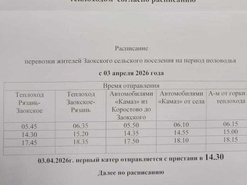 В Заокском сельском поселении Рязанской области с 3 апреля начнёт действовать специальный график перевозок для жителей на время весеннего половодья.