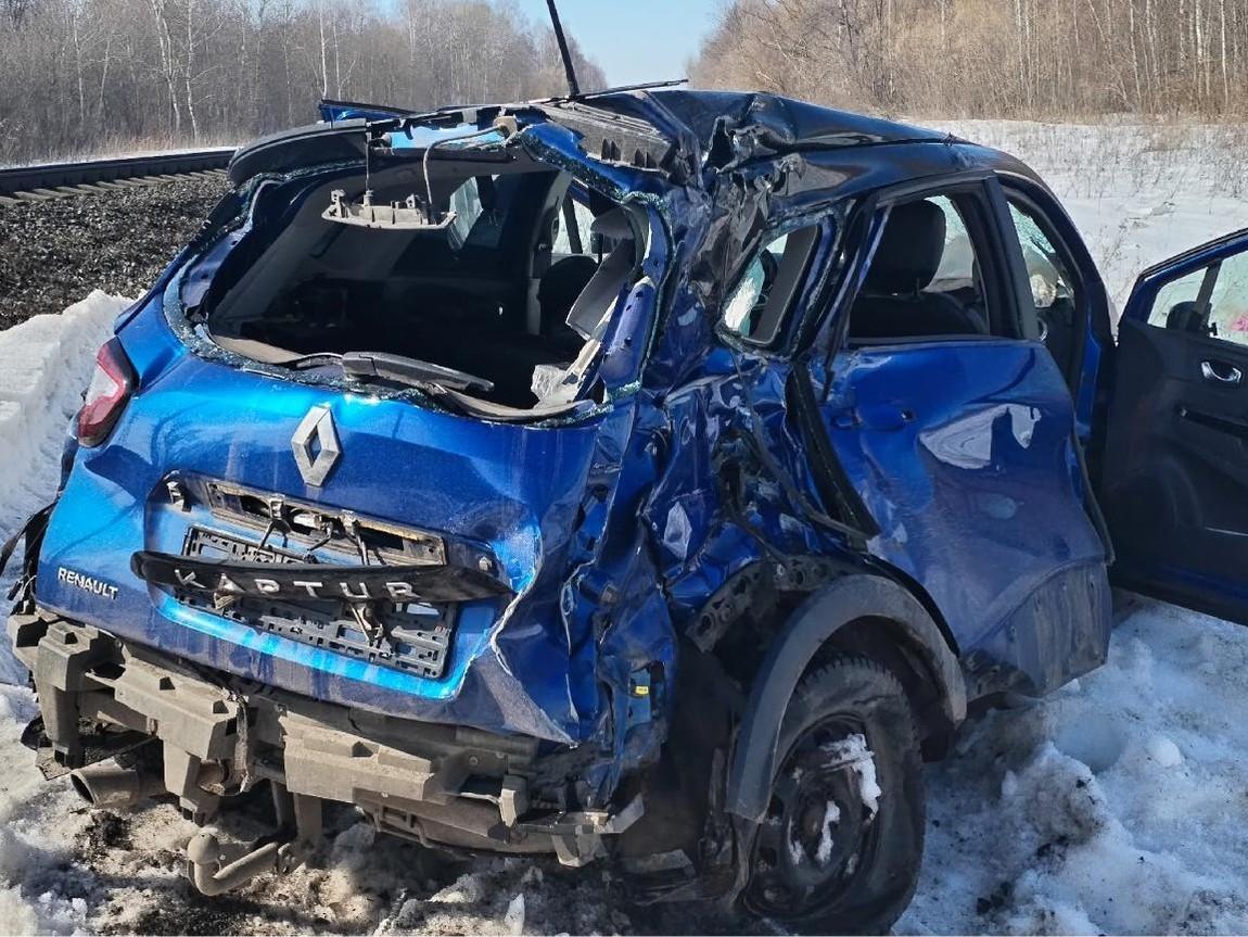 Утром 25 марта на железнодорожном переезде в Ухоловском районе Рязанской области произошло столкновение тепловоза с автомобилем Renault Kaptur.