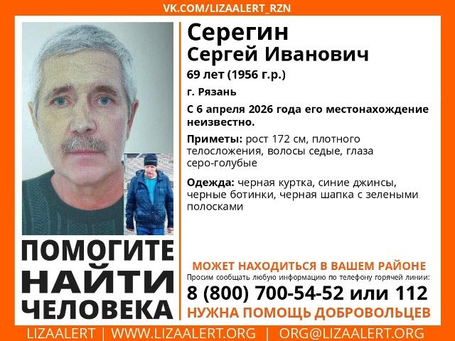 В Рязанской области волонтёры отряда «ЛизаАлерт» ведут поиски 69-летнего Сергея Ивановича Серегина, пропавшего 6 апреля.