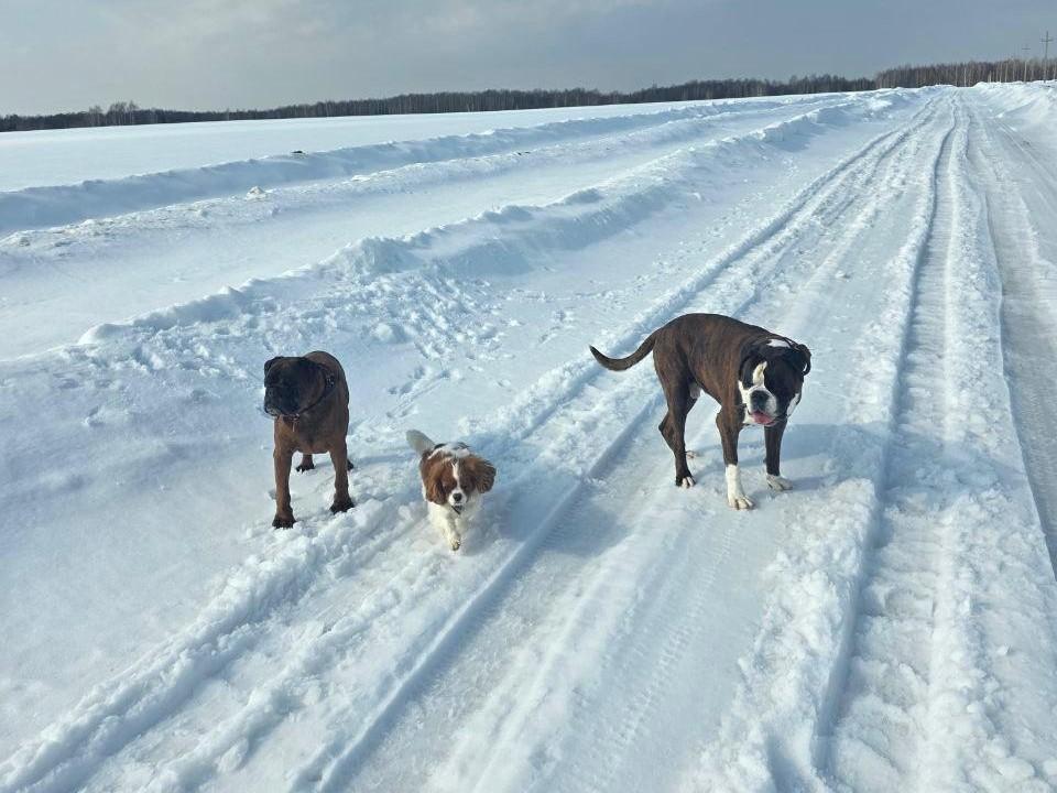Свое обращение она проиллюстрировала снимком прогулки с питомцами, подписав его: «Сердечный привет из маленькой заснеженной русской деревни».