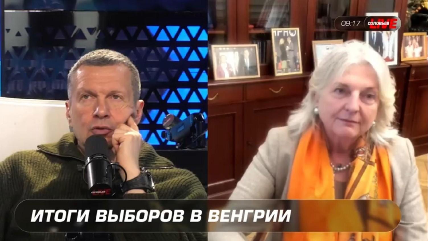 В беседе с телеведущим Владимиром Соловьевым бывший глава австрийского МИД Карин Кнайсль прокомментировала итоги недавних парламентских выборов в Венгрии, где победу одержали оппозиционные проевропейские силы, а партия премьер-министра Виктора Орбана потерпела поражение.